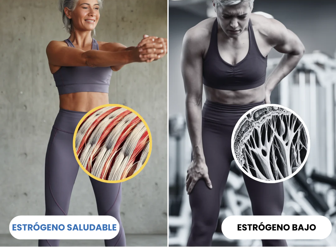 Los niveles bajos de estrógeno en mujeres de 50 a 75 años o más alteran la producción de colágeno, la proteína que proporciona fuerza y elasticidad a los tendones.